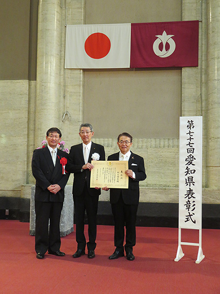 令和7年11月17日(月)に愛知県庁にて第77回愛知県表彰式典が開催されました。 式典では大村秀章愛知県知事から愛知県表彰条例に基づき、地方自治、産業、教育文化などの各分野において功績が顕著であった45人・4団体が表彰され、当協会から柏木博喜副会長が産業の分野での功績が認められて受賞をされました。おめでとうございます。