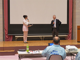 | 加藤フリーアナウンサーと発表者 |