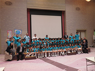 園児と一緒に集合写真