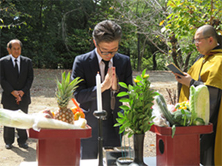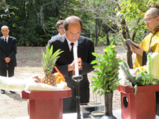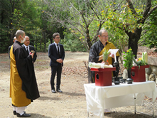 当協会では、建設労働災害の撲滅並びに建設工事現場において、不幸にも殉職された方々の御霊を合祀する目的で、昭和28年12月に名古屋市千種区城山新町の覚王山日泰寺敷地内に「建設事業殉職者慰霊碑」を建立し、昭和29年4月に第1回建設業殉職者慰霊祭を開催しました。