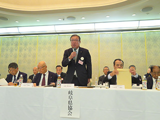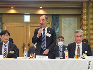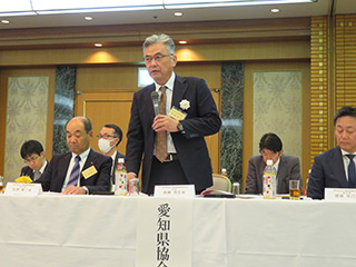当日は、愛知県から大村知事を始め幹部の皆様、国土交通本省から藤田大臣官房審議官、小林大臣官房技術審議官を始め幹部の皆様、中部地方整備局から森本局長を始め幹部の皆様、各県担当部局の幹部の皆様、並びに今井全国建設業協会会長を始め関係団体の皆様が来賓としてご出席いただき、岐阜・静岡・三重の各県建設業協会の役員の皆様及び当協会からは柳会長を始め9名が出席しました。
