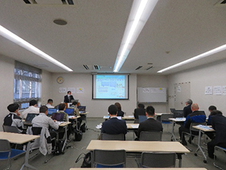 当日は、システムを開発した川田テクノシステム鰍フグループ会社 オペレーションパートナーズ鰍フ嘉津氏が講師を務められ、受講生はノートパソコンやタブレットを使用し、資機材情報の登録や安否確認の報告など実践的な研修が行われました。