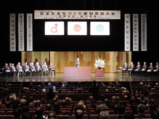 平成29年10月17日(火)に愛知県芸術劇場大ホールにおいて約1,600人が参加して、平成29年度安全なまちづくり愛知県民大会が開催されました。