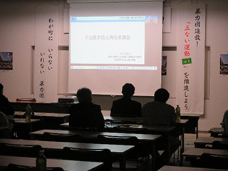 講義後、参加者全員に修了証と職場に貼付する暴力追放ステッカーが交付されました。